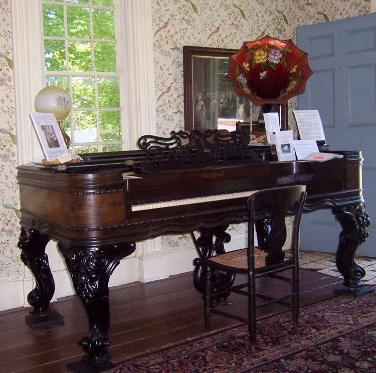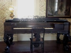 About 18 months ago the historical society had the opportunity to acquire a memento of Mr. Lawrence – his square grand piano. Through the extraordinary efforts of a county historian and a philanthropist this became reality.
