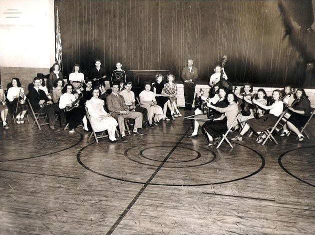 At the time Earl began teaching in Fairview the school district had no music program. Once a year one of the high school teachers would direct a play or musical. Now, with Earl on board, younger children learned any number of instruments and the high school developed a glee club, an orchestra (photo on right) and even a marching drum and bugle corps, although only the drummers performed that first year.