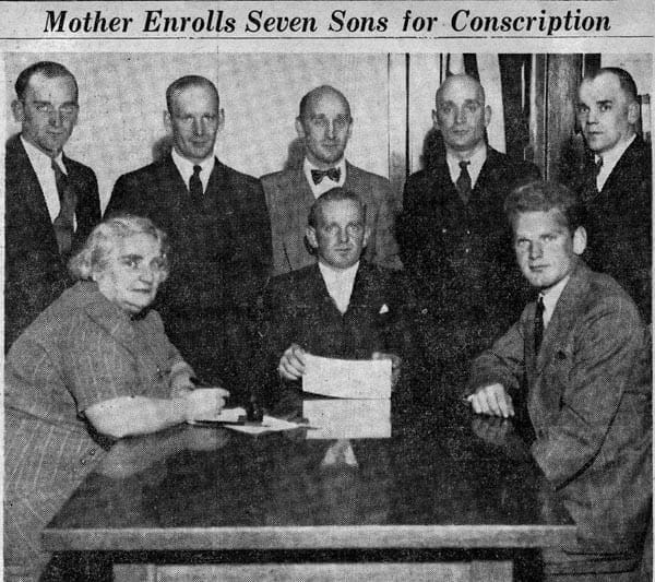 So, in the search for another woman to highlight, this (featured) photo popped up. It must have been taken during World War II. Imagine being a mother and seeing her seven sons sign up to go off to war. That would be heart-wrenching. Did Julia Niebauer, this mother, serve on the Draft Board? Hmm. One quick phone call to a descendant for the facts revealed that this mother was actually Ida Niebauer, Julia’s mother-in-law. And that led to a torrent of information about Julia.