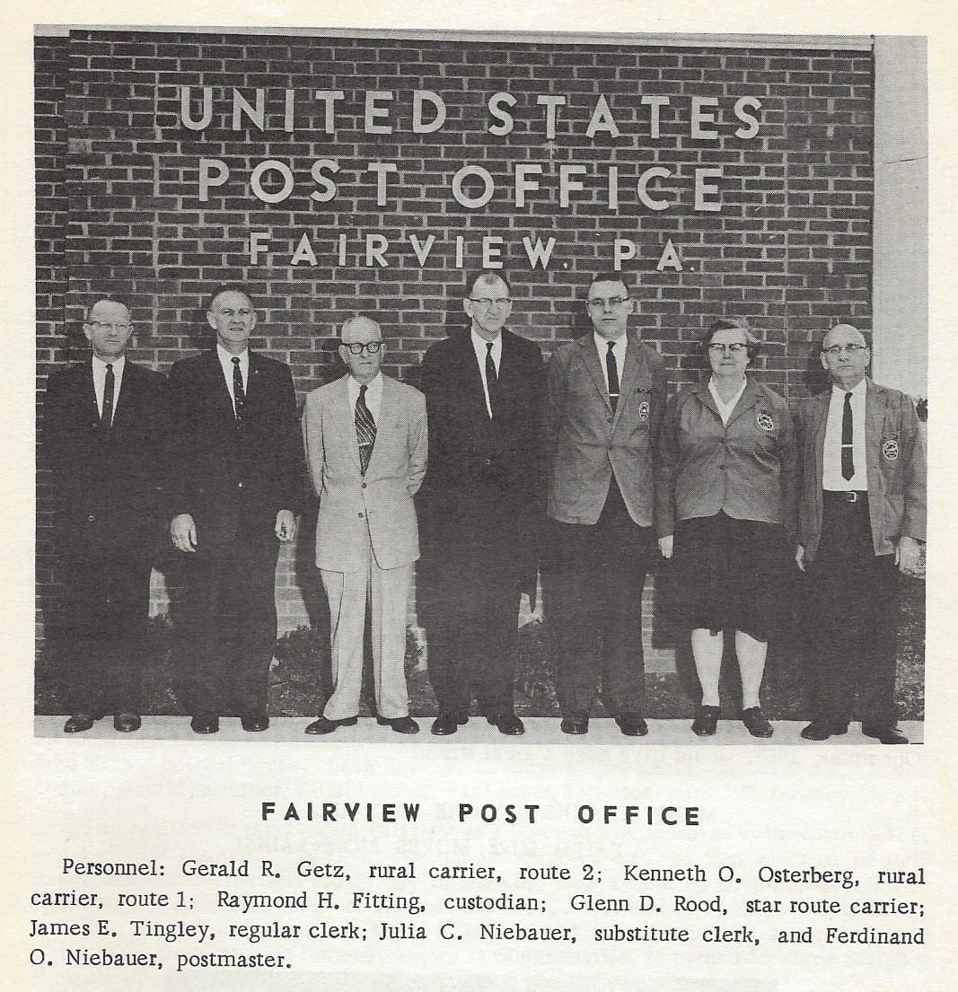 the back of his property could be adapted to handle the mail. By Thanksgiving he had built a one-story frame structure beside his house that served as the borough post office until the (present) brick building was built and dedicated in 1963.