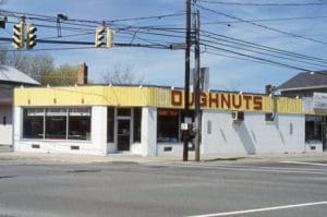 Anyone who now remembers the building on that corner recalls that it was built of cement block, one story high and housed Downey’s General Store, then a donut shop, a pizza place, etc.