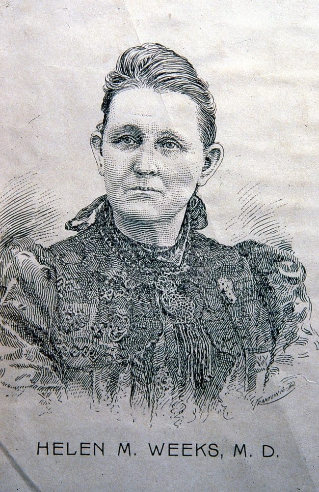 One of Fairview’s outstanding women who has already been recognized here was involved in yet another activity in which she thrived. That was Helen Daggett Pollay Weeks. She had been a young bride then a young widow, had remarried and with her husband had taken the very unusual step (for that time period) to study medicine.