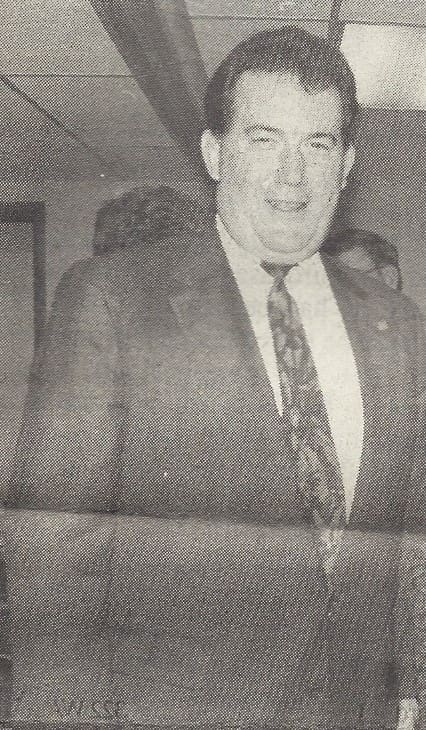 The third award was given to John Masterson as Citizen of the Year. Rev. Chuck Cammarata then of the Presbyterian Church presented the award, mentioning that Masterson was fairly new to the community, yet as a “people person” he had been a Cub Scout den leader, a coach for girls’ softball, boys’ baseball, and youth football and soccer. At that time he also was teaching senior high religious education at Holy Cross Church where he also led a youth group ministry.