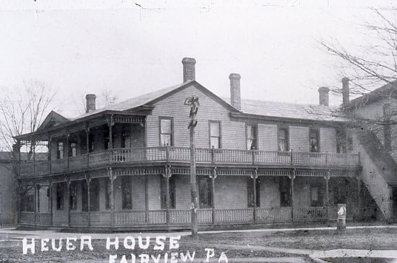 Edward Asmus was listed as “The Proprietor,” and his business was under the heading: “Repair Work and Horse Shoeing.”  The building was set back from the road, a few lots south of the Fairview Hotel.  (The photo here shows the Hotel prior to 1921 when the owner at that time removed the attached building at the back.  It had been a livery stable with a second floor available for use by the community, including for school basketball games.  After 1921 the new owner turned the building one-quarter turn and removed the upper and lower verandas.)