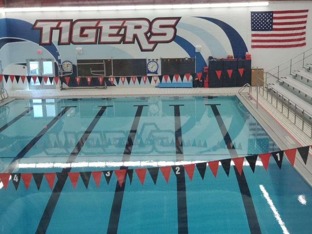 At left is the “new” high school built in 1973.  The featured image is the renovated swimming pool, one of four updated areas along with the addition that includes 42 new classrooms, completed in time for the fall opening of the 2023/2024 school season.