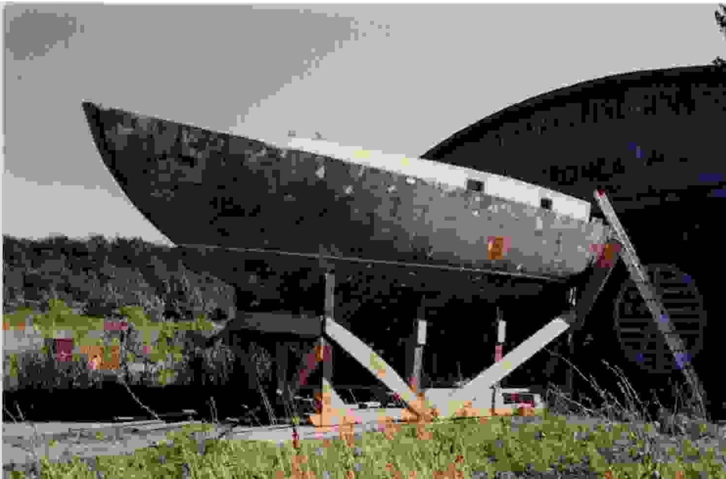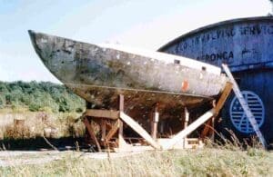 Neil sold it to the Kudlak brothers after World War II and they kept it going until 1956, then sold it to Harvey Walter and Paul Joslin who kept it mowed; the hangars remained but slowly deteriorated. They sold it to the Monarch Properties Corporation of Erie and Ernest Testo used it for many years to house his steam engine collection, but in 1971 and 1972, the one remaining hangar was empty and someone put it to an interesting use… He built a sailboat in it.