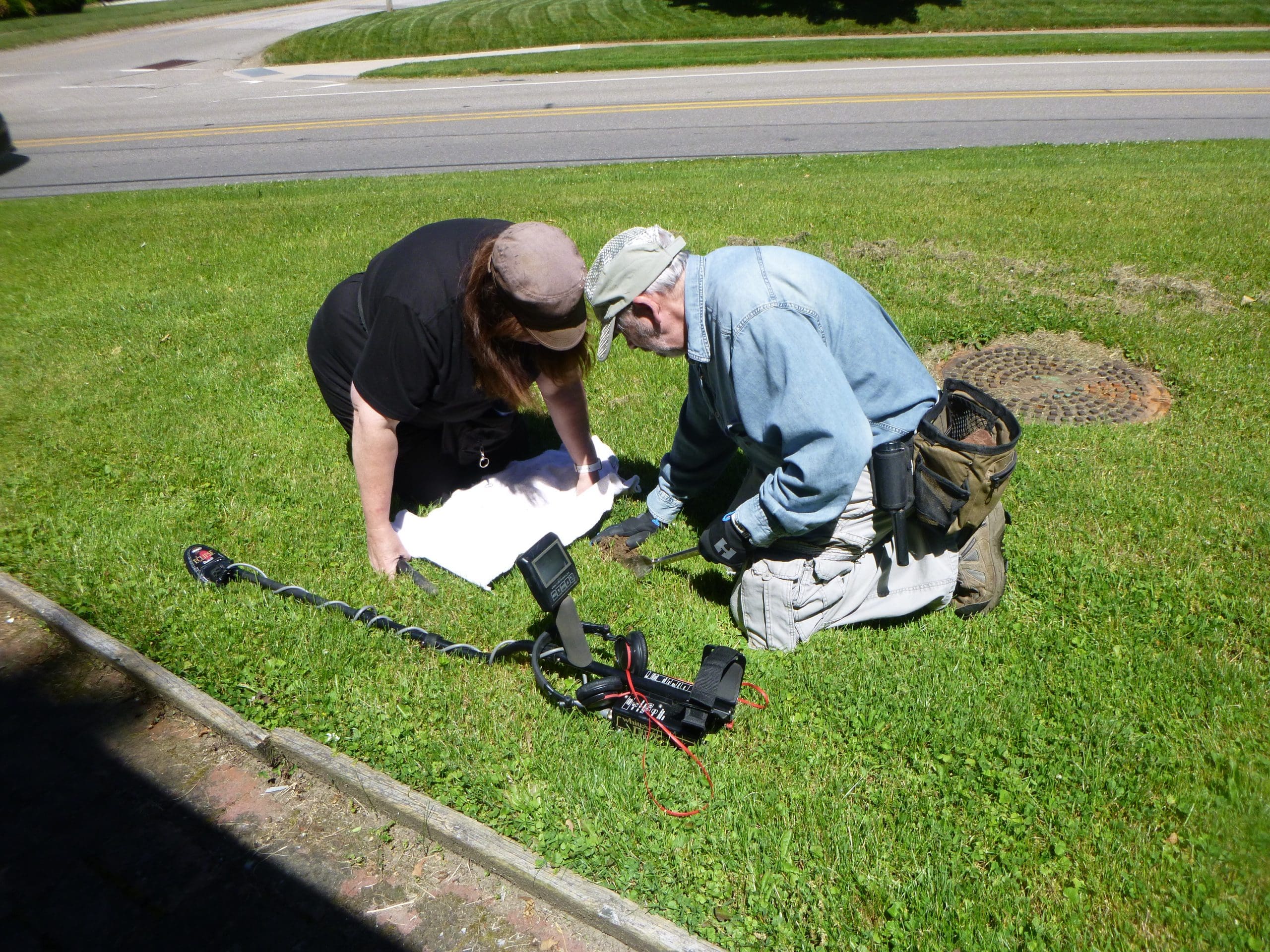 Anyone driving by the Sturgeon House on Sunday afternoon, June 14, might have seen some interesting goings-on. Two people, Jackie and Ted, were there to run their metal detectors over the lawn around the Sturgeon House to find old metal pieces.
