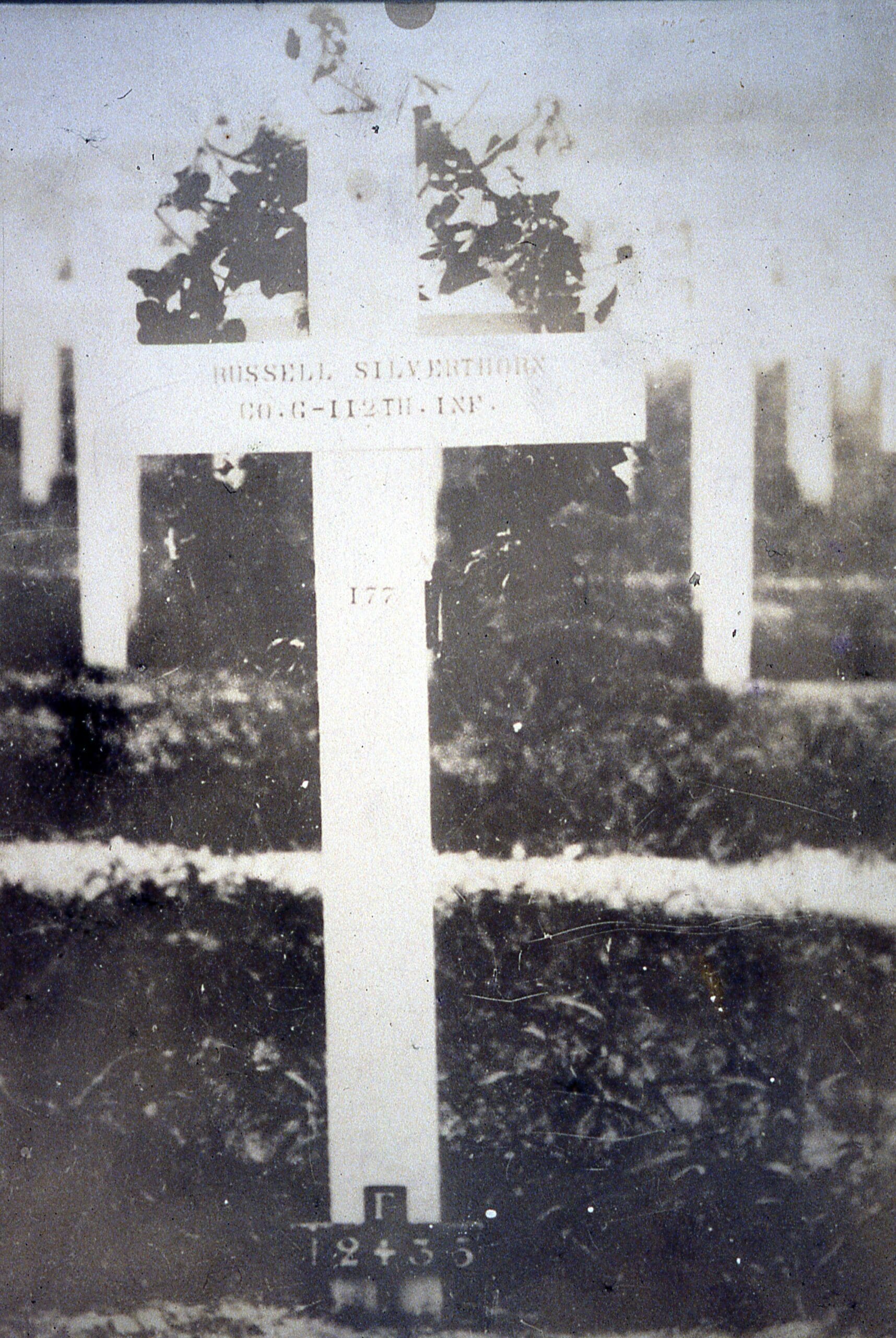Nearly a year later, in late August 1918, Company G was engaged in a fierce battle at Fismette, in France. Russell Silverthorn did not survive, although his brother Lee did. Russell was buried alongside many of his comrades in an American military cemetery at Fismes, on the Vesle River.